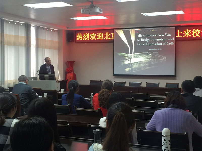 2016年4月20日下午,应太阳集团tyc151cc的邀请,北京科技大学化学与生物工程公司赵亮博士来公司讲学,在化学楼学术报告厅做了题为“Microfluidics: A New Way to Bridge Phenotype and Gene Expression of Cells”的学术报告。报告会由太阳集团tyc151cc黄克靖教授主持,化院教师、研究生、部分本科生等100余人聆听了报告。