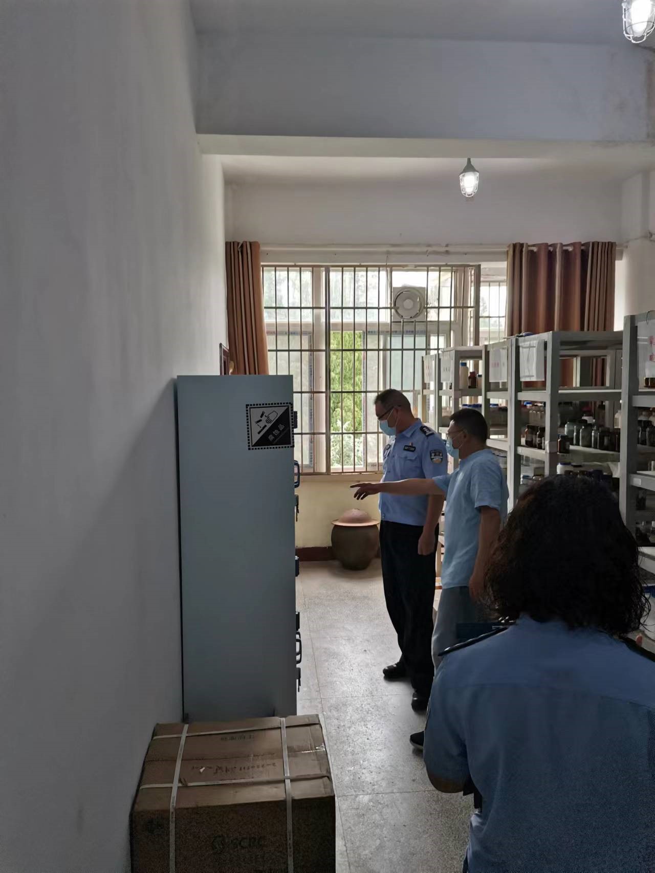7月26日上午,信阳市浉河区公安局治安管理大队和驻校派出所民警到太阳集团tyc151cc开展危化品安全检查和指导工作。太阳集团tyc151cc副经理于永生、化学实验室教学中心相关人员陪同检查。