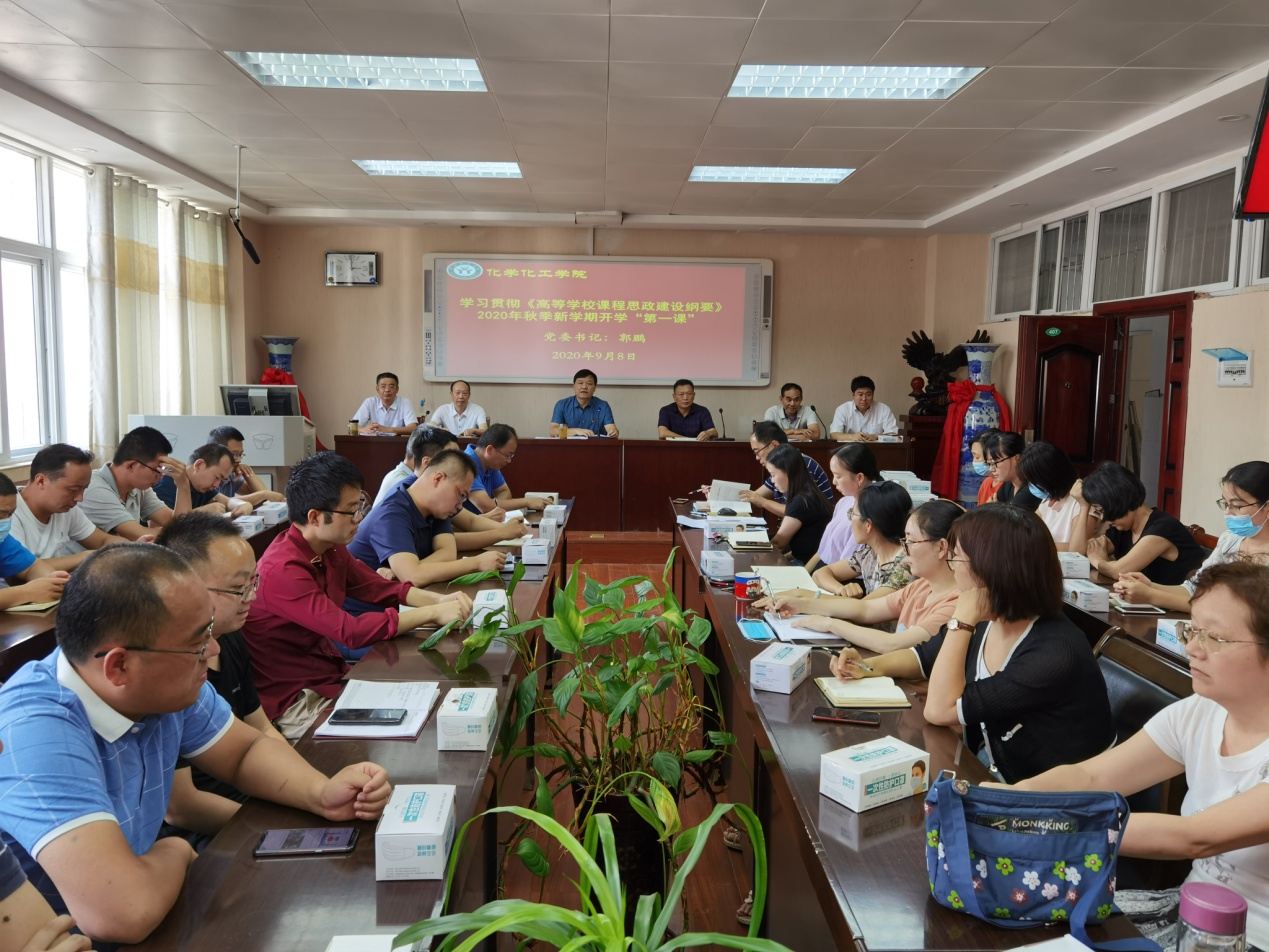 郭鹏结合习近平总书记关于教育的重要论述和全国教育大会精神,以《高等公司课程思政建设指导纲要》为主题内容,为全体教师上了一堂生动精彩的新学期“第一课”。