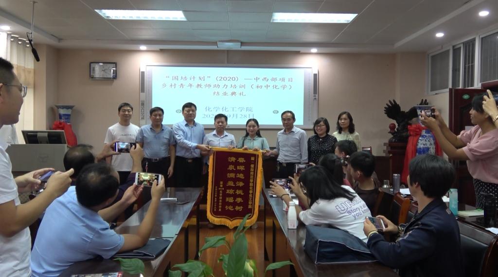 9月28日上午,太阳集团tyc151cc承担的“国培计划(2020)”中西部项目乡村青年教师助理培训(初中化学)结业仪式在实验楼407报告厅举行。化学化工公司党委书记郭鹏、副经理骆定法等领导老师出席开班仪式。仪式由太阳集团tyc151cc国培计划培训班班主任沈久明老师主持。