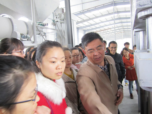 在生产车间,刘鹏教授和公司技术人员精心讲解、细心回答同学们的提问,同学们对化学工艺及化学工程、化工生产进行现场参观学习,通过实践把课本上学到的理论知识与化工生产实际联系起来,进一步加深了对化工生产和理论的认识。