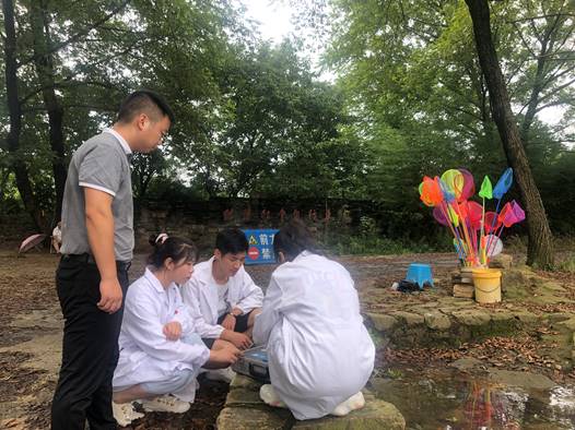 队员们携带专业仪器,在老师的指导下认真准备,随机取样,仔细对比计算,详细记录。检测结果显示郝堂村水质PH值介于6.4-7.0之间,呈弱酸性。土壤氮、磷、钾、有机盐等指数均处于正常值。事毕,队员们将水土检测结果详细告知了当地村民村委。随后,志愿者将合理科学的土壤水质空气改善方法介绍给了当地村民,获得村民的一致好评。