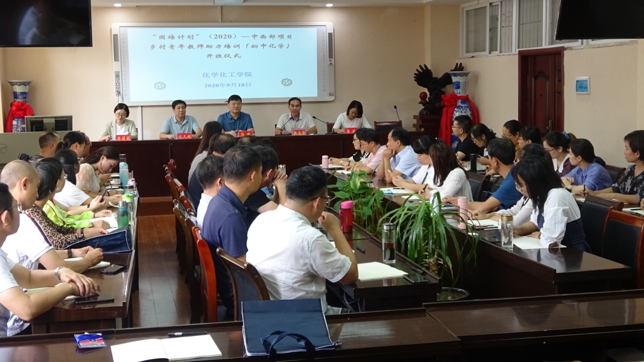 918日上午,太阳集团tyc151cc担的“国培计划(2020中西部项目乡村青年教师助理培训(初中化学)开班仪式在实验楼407报告厅举行。太阳集团tyc151cc党委书记郭鹏、副经理骆定法等领导老师出席开班仪式。仪式由太阳集团tyc151cc国培计划培训班班主任沈久明老师主持。