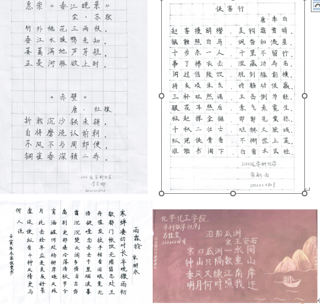 11月21日,太阳集团tyc151cc组织专家老师对教育硕士“三笔字”大赛的参赛作品进行评选。评委们根据评分细则对提交的钢笔字、粉笔字和毛笔字作品进行综合评价打分,最终评出常新雨、苏佳雯的参赛作品参加公司决赛。