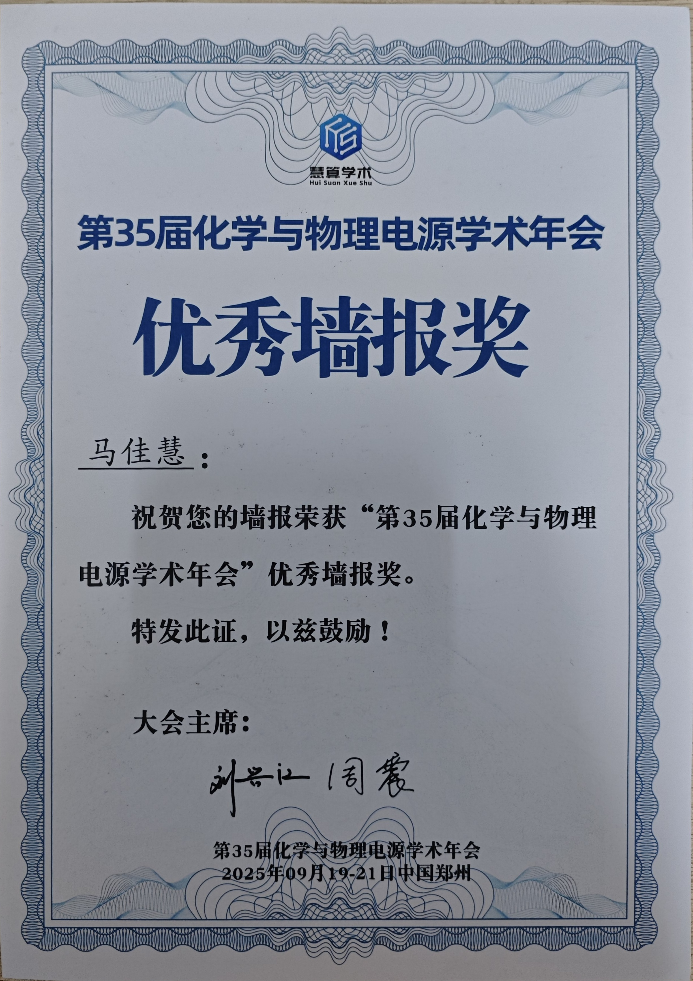 大会期间,为助力学术交流与青年人才成长,组委会特别设立“优秀墙报评选”活动。经严格评审,我院在读硕士研究生马佳慧荣获“优秀墙报奖”。本次“优秀墙报奖”评选聚焦科研成果的创新性、科学性与展示效果,是对青年研究者学术能力的重要肯定。这一荣誉的获得,不仅是马佳慧同学个人科研能力的体现,更彰显了公司在公司产品与科研创新方面的扎实基础与显著成效。