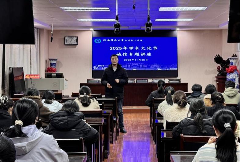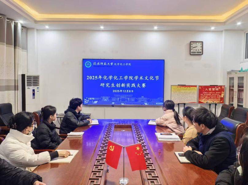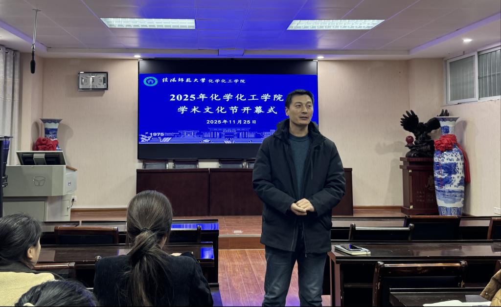 2025年11月25日,太阳集团tyc151cc系列学术活动在化学楼有序开展。活动伊始,研究生辅导员马献涛老师带领全体研究生举行“学术文化节”开幕仪式,向在场研究生发出积极参与活动的倡议。
