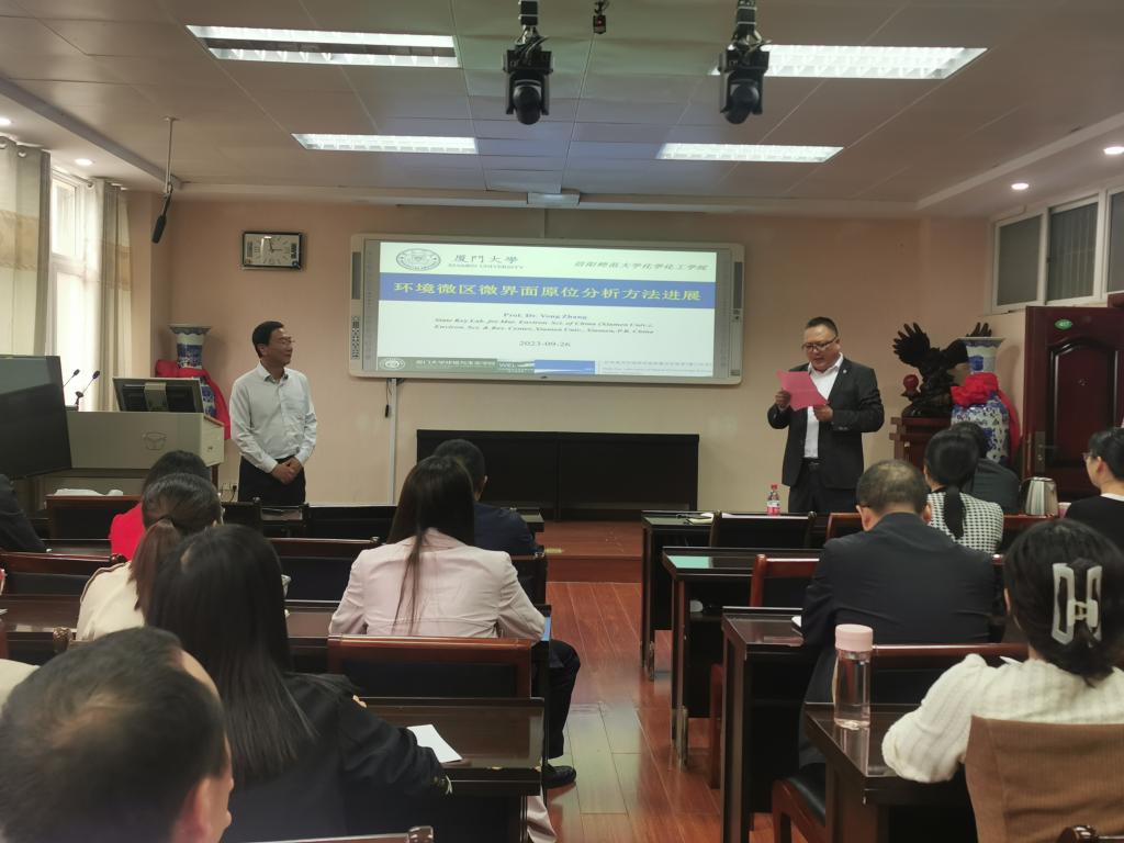9月26日,应太阳集团tyc151cc邀请,厦门大学张勇教授在化学楼407会议室为公司师生作题为“环境微区微界面原位分析方法进展”的学术报告。太阳集团tyc151cc青年教师及研究生聆听了报告,报告会由太阳集团tyc151cc副经理曹俊涛教授主持。