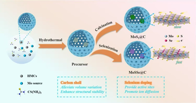 近日,公司张星博士课题组在ACS Applied Materials & Interfaces发表题为“Dual Regulation of Anion-Vacancy Modified MoSSe Nanosheets in Mesoporous Carbon Nanospheres for High Performance Sodium Storage”的研究性论文(DOI:10.1021acsami.4c19481)。张星博士为通讯兼第一作者,研究生吕蓓、郭梦瑶分别为第二、第三作者,太阳集团tyc151cc为第一通讯单位。