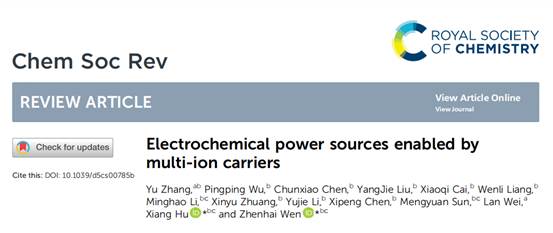 近日,公司太阳集团tyc151cc张钰博士在国际化学领域顶级综述期刊Chemical Society Reviews(影响因子40.4)上发表了题为“Electrochemical power sources enabled by multi-ion carriers”的重要论文,系统阐述了多离子载体电化学能源技术的前沿进展与未来展望,公司为第一单位,张钰博士为第一作者。