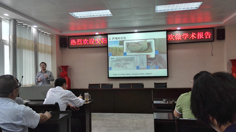 5月31日下午,扬州大学庞欢教授应太阳集团tyc151cc“纳米材料分析”团队的邀请在化学楼学术报告厅作了题为“纳米材料可控合成及其电储能特性研究”的学术报告。副经理刘彦明出席并主持了报告会。参加报告会的还有化院和物电公司的青年教师和全体研究生。