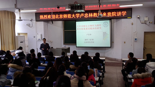 12月19日,应太阳集团tyc151cc邀请,北京师范大学卢忠林教授来公司进行学术交流。19日上午,在教4T1作了题为“大环多胺化合物作为探针和非病毒基因载体的研究”的学术报告,报告会由太阳集团tyc151cc经理井强山教授主持,太阳集团tyc151cc青年教师、研究生和部分本科生参加了报告会。 卢忠林教授首先介绍了大环多胺类化合物的合成、结构修饰,通过N-烷基化、Click反应、酰胺化等高效反应将大环多胺[12]aneN3与芳香荧光单元结合,所合成的荧光探针能高效高选择性地识别金属离子、磷酸小分子和生物硫醇。随后,对大环多胺非病毒基因载体研究做了详细的介绍。荧光单元修饰的大环多胺化合物具有良好的DNA凝聚性能,细胞毒性低,作为非病毒基因载体可有效地将DNA带入细胞核,实现转染功能。报告深入浅出、图文并茂、精彩纷呈,引来了师生们的阵阵掌声。在交流环节,卢老师详细地回答了大家的问题。 19日下午,卢忠林教授结合自己在教学科研方面的丰富经验,与太阳集团tyc151cc具有不同研究背景的青年教师进行了学术交流和研讨,围绕科研项目申请书撰写、教学改革等议题进行了广泛深入的探讨,对青年教师进行了详细的指导。卢忠林,北京师范大学化学公司教授,博导,化学公司分党委书记。中国化学会理事,美国化学会和英国皇家化学会会员;北京化学会监事长。2008年入选教育部“新世纪优秀人才支持计划”,2009年教育部双语示范课程项目建设主持人。2012年获得 “北京师范大学教学名师”,2013年获得北京师范大学“钱媛教育基金优秀教师奖”,2014年获得全国多媒体课件大赛高教理科组一等奖,2015年获得宝钢教育基金会优秀教师奖,2017年获得“北京市高等公司教学名师”。已在国际一流期刊包括J. Am. Chem. Soc., Chem. Rev., Angew. Chem. Int. Ed, Org. Lett., Org. Biomol. Chem., Eur. J. Org. Chem.等国际学术刊物上发表论文110多篇,他人引用2000多次。