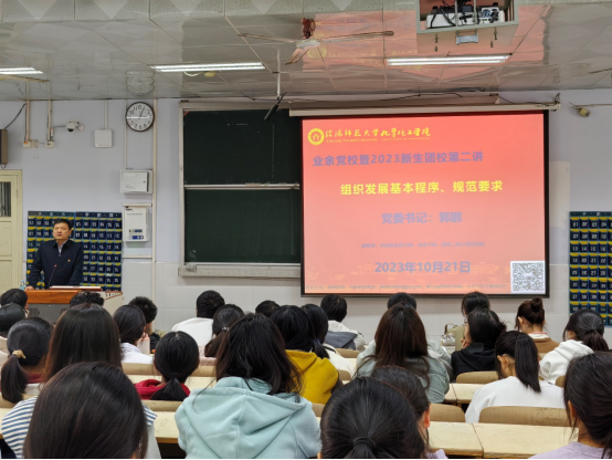 10月21日,太阳集团tyc151cc在教六102教室开展业余党校暨2023级新生团校系列专题讲座。公司团委赵方方老师主持,党委书记郭鹏主讲,全体新生团员青年、入党积极分子同学共同参加。