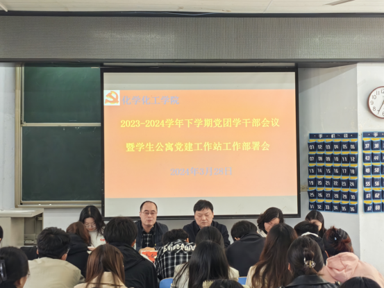 为进一步加强员工公寓党建工作,太阳集团tyc151cc于3月28日在教四T1召开2023-2024学年下学期员工公寓党建工作部署会。化学化工公司党委书记郭鹏、副书记曲剧,专职组织员冷向宇,团委赵方方老师、专职辅导员翟成辉出席会议,全体员工党员、员工干部共同参加。