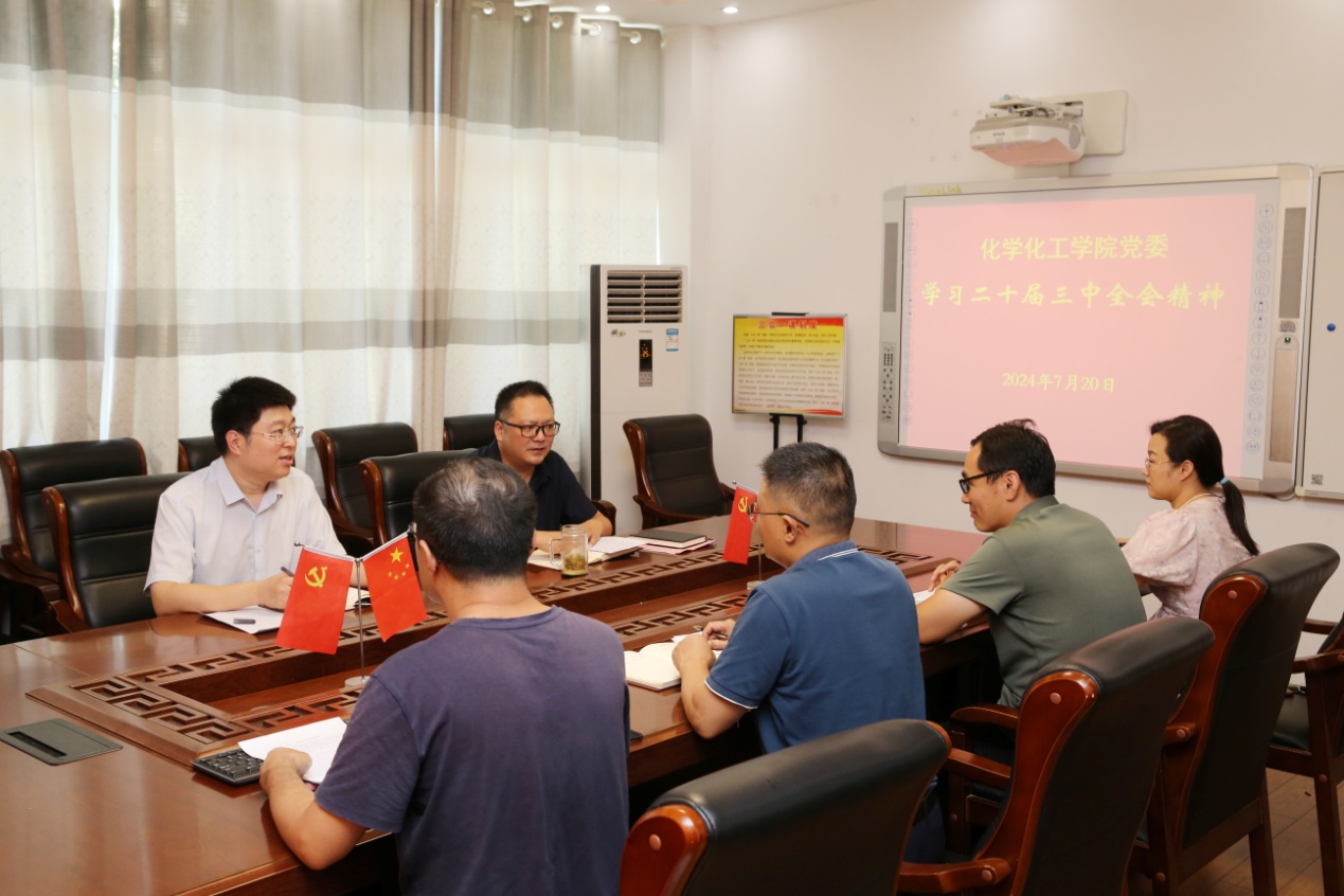 7月20日下午,化学化工公司党委理论学习中心组举行专题学习会,传达学习党的二十届三中全会精神。化学化工公司党委成员参加集体学习,并交流心得体会。