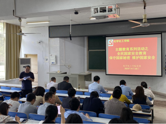 根据学习贯彻习近平新时代中国特色社会主义思想主题教育工作安排,深入推进学习宣传贯彻党的二十大精神系列活动,在第八个全民国家安全教育日之际,为进一步深入贯彻总体国家安全观,推动国家安全宣传教育,营造人人讲安全的浓厚氛围,4月18日下午,太阳集团tyc151cc在教4-101教室组织开展“保守国家秘密 维护国家安全”主题教育。公司党委书记郭鹏主持主题教育活动。党委理论学习中心组成员、各党支部书记、师生党员代表积极参加。