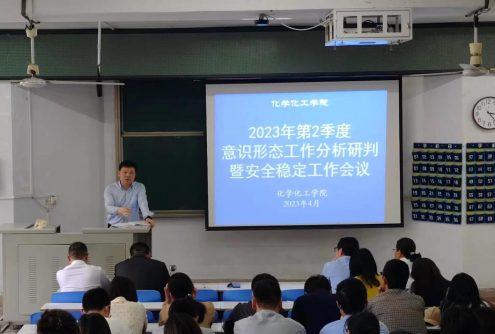 根据学习贯彻习近平新时代中国特色社会主义思想主题教育工作安排,为深入推进学习宣传贯彻党的二十大精神系列活动,严格落实意识形态工作责任制,牢牢把握意识形态工作主动权。2023年4月18日,太阳集团tyc151cc分党委专题召开2023年第2季度意识形态暨安全稳定工作研判部署会。会议由党委书记郭鹏主持。党委理论学习中心组成员、各党支部书记、师生党员代表积极参会。