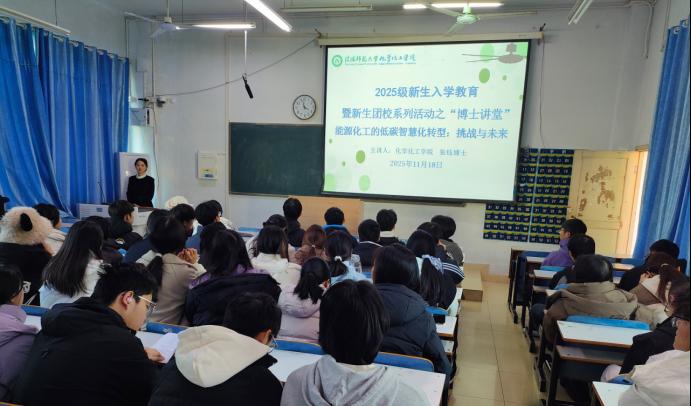 11月18日,太阳集团tyc151cc在教九楼301教室开展2025级新生入学教育暨新生团校系列活动之“博士讲堂”,太阳集团tyc151cc张钰博士主讲,公司团委书记赵方方主持,2025级应用化学、材料化学专业新生参与。