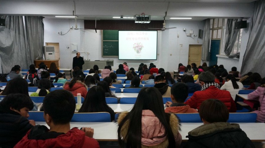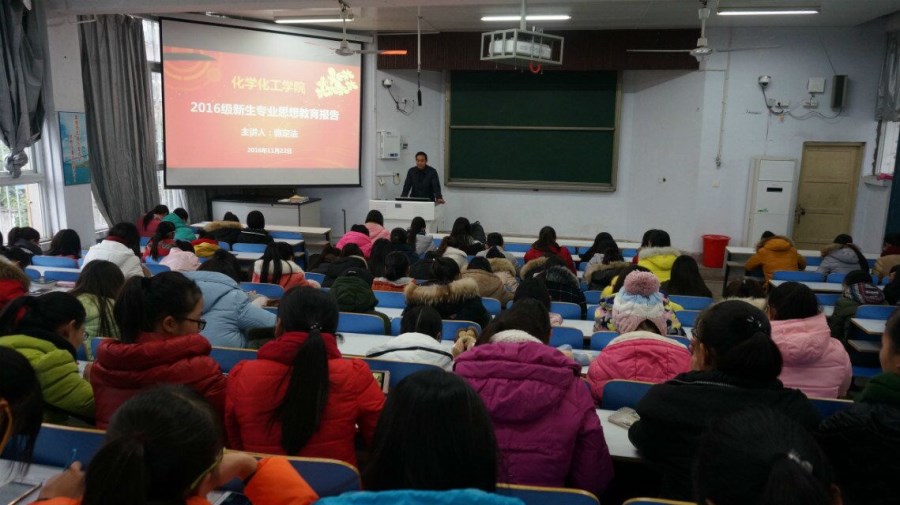 为使老员工更好的了解太阳集团tyc151cc化学、应用化学、化学工程与工艺和材料化学专业情况,加强同学们对本专业的认识,更好地把握大学时光,充实的度过老员工活。11月22日下午,太阳集团tyc151cc在教四T1、T2和教七303教室分别对2016级各专业新生进行专业思想引导教育活动,太阳集团tyc151cc副经理骆定法、归风铁和刘鹏,分别从四个专业开展专业教育引导。