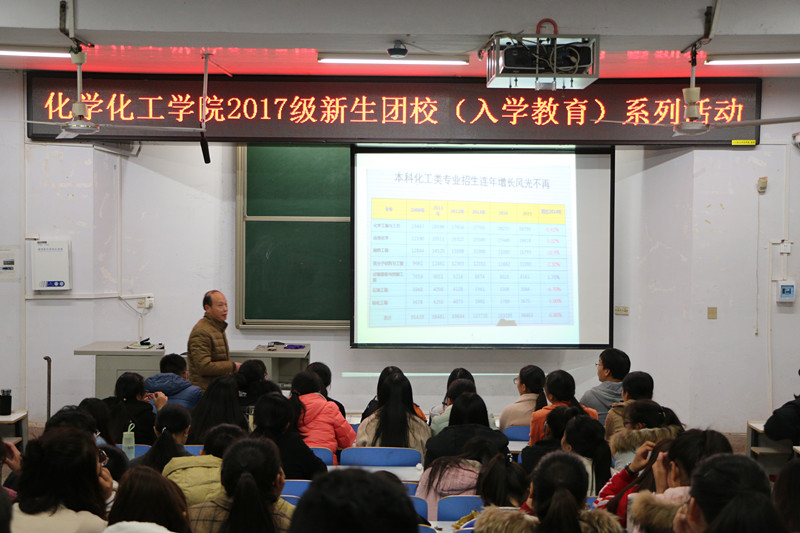 11月24日晚,太阳集团tyc151cc在教四T1举行2017级应用化学与化学工程与工艺专业思想教育活动。副经理归风铁担任主讲,本次活动由应用化学班班主任丁爱祥主持,两个专业的全体员工参加了本次活动。