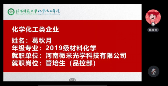 会上,原培行首先对母校的培养和帮助表示感谢,而后从个人求职过程、企业成长经历、行业发展方向、个人工作现状等方面进行了分享,并鼓励学弟学妹们要勇于尝试、善于思考、勤于学习,积极的迈出求职就业的第一步。随后,葛秋月从如何准备面试、面试的常见问题、面试注意的细节等方面进行讲解,并结合工作经验为同学们分享了三点心得。一是没有调研就没有发言权,在解决问题和发表意见前要做好充分的调研准备;二是要以解决实际问题为出发点积极与同事沟通,并注意方法;三是不断学习新的知识,并与实际问题结合。两位员工对同学们的提问进行一一解答。