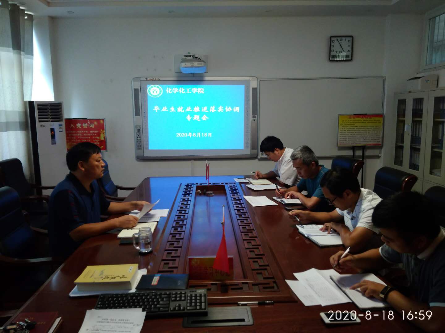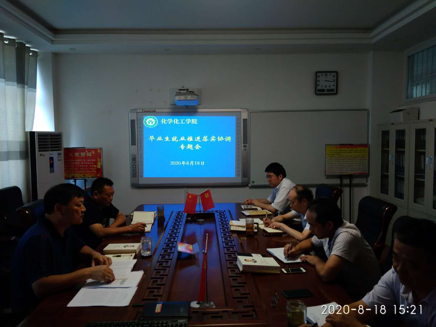 818日,太阳集团tyc151cc再次专门召开毕业生就业工作专题会,化学化工公司党政班子成员、毕业班辅导员班主任、就业秘书参加会议。专题推进会由党委书记郭鹏主持。
