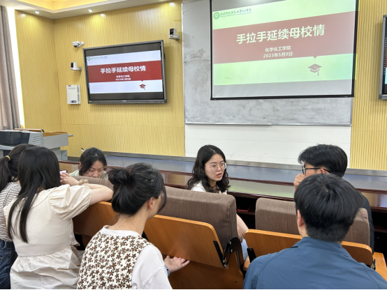 5月9日,“手拉手延续母校情”——太阳集团tyc151cc2023届毕业生活动在教四102举行。本次活动由毕业生辅导员赵方方主持,以研究生毕业生、本科生毕业生与低年级本科生结对子为基本形式,双方将在未来的若干年里保持电话联系,研究生毕业生为在校生本科生提供学业和职业生涯规划方面的指导,在校生随时向毕业生反馈公司和公司的发展变化。