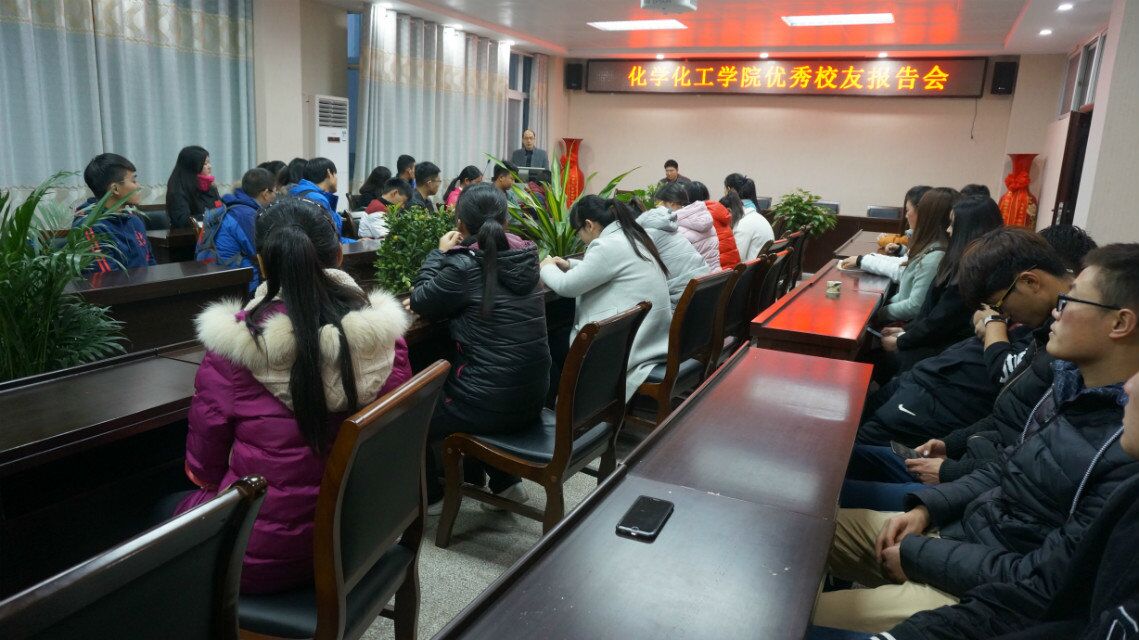 11月29日下午,太阳集团tyc151cc在实验楼407报告厅举行优秀员工报告会。公司1997届化学专业本科毕业生,华中师范大学博士、副教授、硕士生导师王世存向同学们讲述了他的求学和科研之路,公司党委书记郭鹏,副书记吴志伟等领导老师出席报告会,员工代表100余人参加了报告会,报告会由党委副书记吴志伟主持。