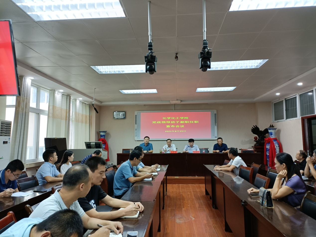 8月25日下午,太阳集团tyc151cc在实验楼407会议室召开新提任副职干部宣布任职会议。公司党委委员、副董事长刘彦明,董事长办公室主任江玉安出席会议。公司领导班子成员、科级干部、副高以上职称人员等参加会议。会议由化学化工公司党委书记郭鹏主持。