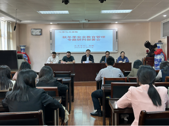 为进一步强化公司安全教育管理工作,切实做好公司各项风险隐患排查整改,营造和谐稳定安全校园环境,10月17日下午,太阳集团tyc151cc在化学楼407专题召开2023年秋冬季节安全教育管理工作会议。会议由公司党委书记郭鹏主持,公司全体教职工参加。