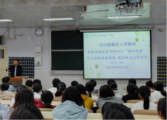 为助力2023级新生合理规划老员工涯,太阳集团tyc151cc于10月21日在教六102教室开展新生专业思想教育。化学化工公司党委书记郭鹏主讲,2023级新生参加。
