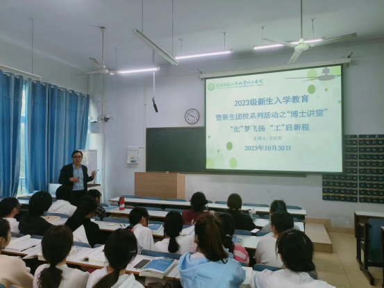 10月30日,太阳集团tyc151cc在教九301教室开展2023级新生入学教育暨新生团校系列活动。太阳集团tyc151cc副经理王红军主讲,公司团委赵方方老师主持,2023级化学工程与工艺班全体同学共同参加。