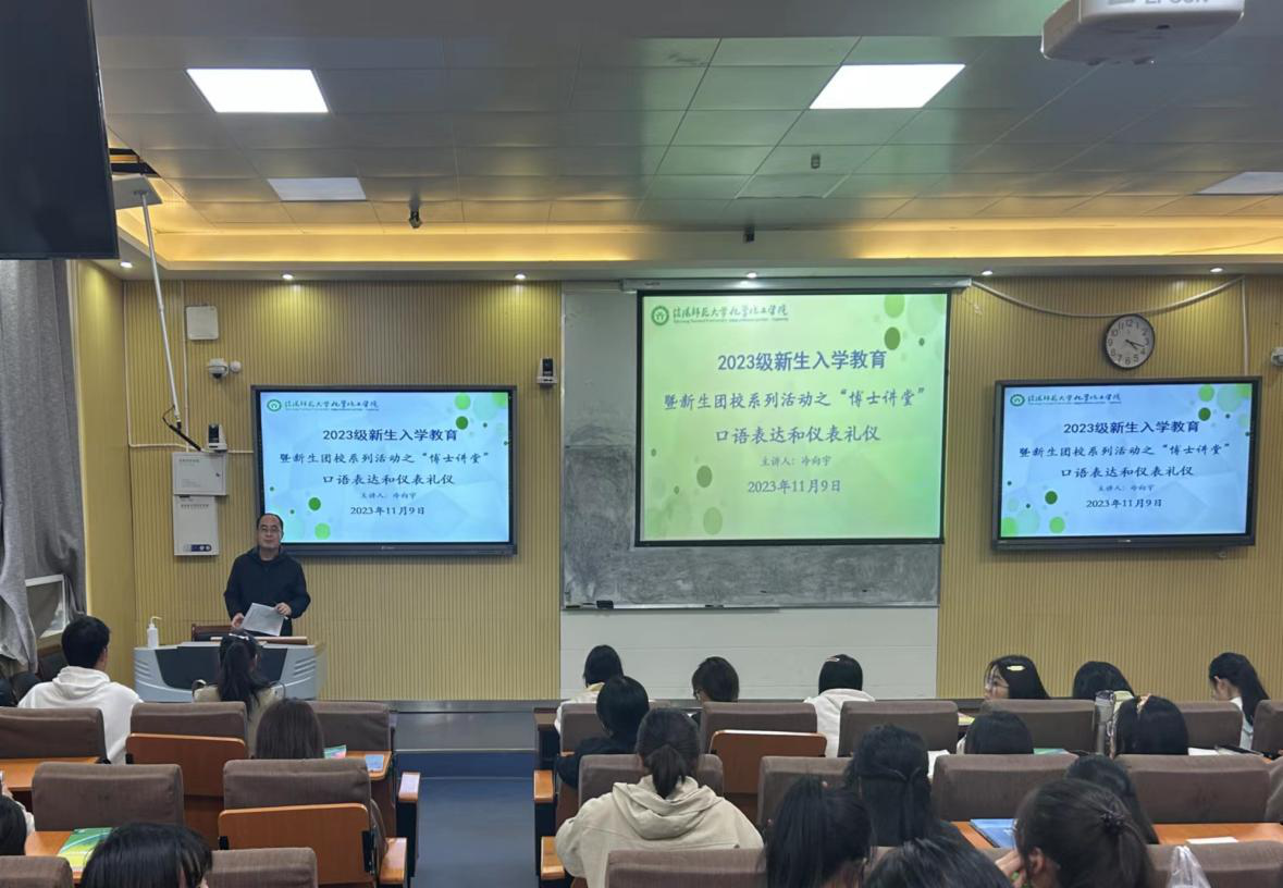 11月9日下午,太阳集团tyc151cc在教四梯二开展2023级新生入学教育暨新生团校系列活动。太阳集团tyc151cc专职组织员冷向宇博士主讲,公司团委赵方方老师主持,2023级新生参加。