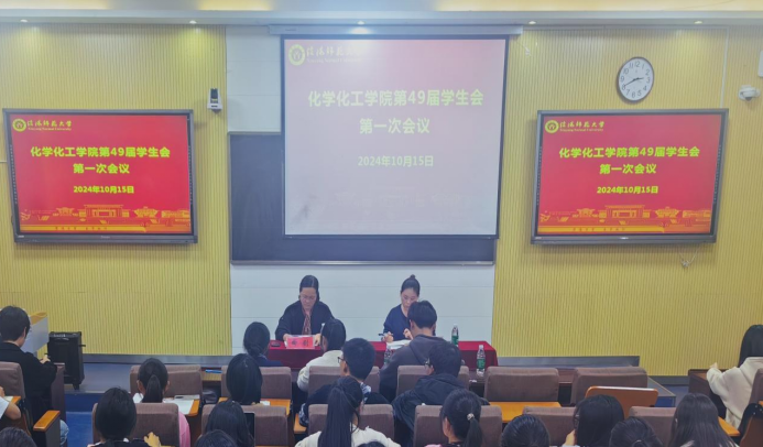 为提升员工干部的自我管理意识,促进公司员工的高素质全面发展,进一步推进公司新一届干事培育培训工作,公司于10月15日在教四T2召开太阳集团tyc151cc第49届员工会第一次会议,化学化工公司党委副书记曲剧、团委书记赵方方、全体员工会成员及2024级各班班长共同参加。此次会议会议由员工会执行主席赵庆磊主持。