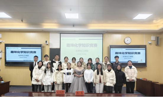 比赛伊始,主持人介绍了本次活动的相关竞赛流程及注意事项,随后,化学化工学院舞蹈队成员带来精彩的开场舞点燃了现场气氛。比赛分为三个阶段,首先进行的是限时答题,各选手以组为单位,凭借扎实化学知识快速作答,在规定时间内答题得分;其次便是抢答环节,选手们全神贯注,思想敏捷,在合作中成长,于分秒间竞争;最后是你说我猜环节,每组派一人通过对化学式进行描述,另一人猜测,组内合作进行得分,选手们配合默契,引得现场阵阵喝彩。环节之间,还穿插了歌曲演唱、观众互动答题赢取小礼品和手语舞等表演,现场氛围热烈。历经三轮较量后,“我们这”队荣获一等奖、“输赢都去开派”队荣获二等奖、“薛定谔说的”队荣获三等奖、“畅通无组”队荣获优秀奖。比赛结束后,由老师们及主席团成员为获奖选手们颁奖并合影留念。