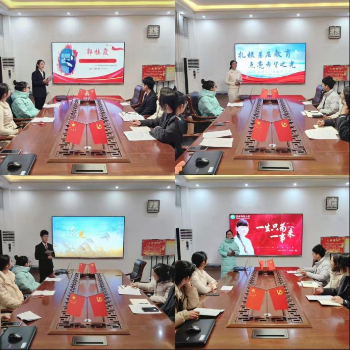 比赛期间,4名参赛选手们围绕着“扎根基层教育,点亮希望之光”的主题展开演讲。王雨晴选手以郭桂霞老师教育故事为切入点,讲述了郭老师感人至深的教育篇章,希望像她那样为基层教育呐喊助威,用关爱与支持为基层的孩子们铺就一条通往广阔世界的大路。陈鑫雨选手着眼于教育的传承与担当,她表示以李芳老师为榜样,学习她坚守基层、奉献一线的定力,争做人民需要的、有理想信念的好老师。李清坡选手以小学的班主任——武老师为故事主线讲述老师带给他的启迪,由此想成为像武老师一样的无私奉献的乡村教师。张晓楚选手以支月英老师的教育事迹向大家表达了她希望发扬奉献担当的教育精神点亮大山孩子的希望之光,照亮员工的成长之路。