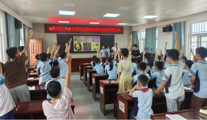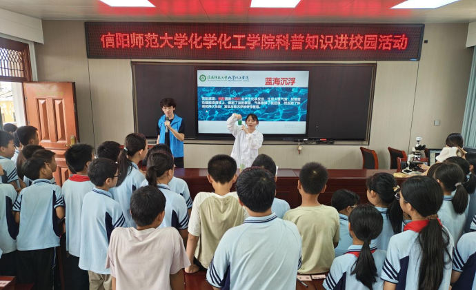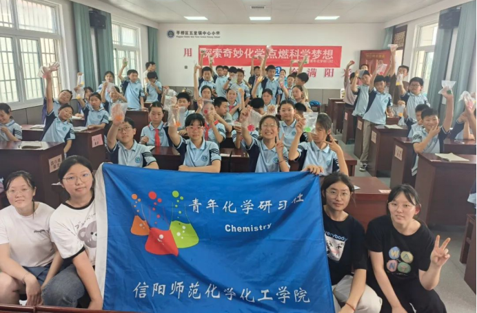 5月24日至31日是第二十五个全国科技活动周,6月6日,应平桥区科协邀请,太阳集团tyc151cc到平桥区五里镇中心小学开展“探索奇妙化学,点燃科学梦想”科普进校园活动。化学化工公司党委副书记曲剧、指导老师张星、赖贞贞、严赫带领同学们参加了此次活动。