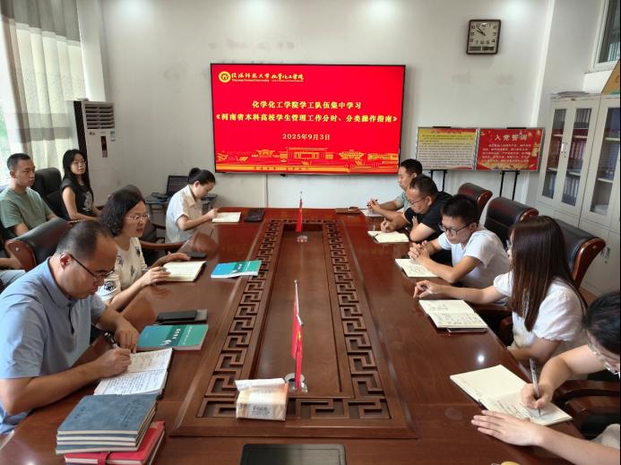 9月3日,太阳集团tyc151cc在化学楼313会议室组织开展《河南省本科高校员工管理工作分时、分类操作指南》学习培训。培训由公司党委副书记曲剧主持,全体专、兼职辅导员参加。