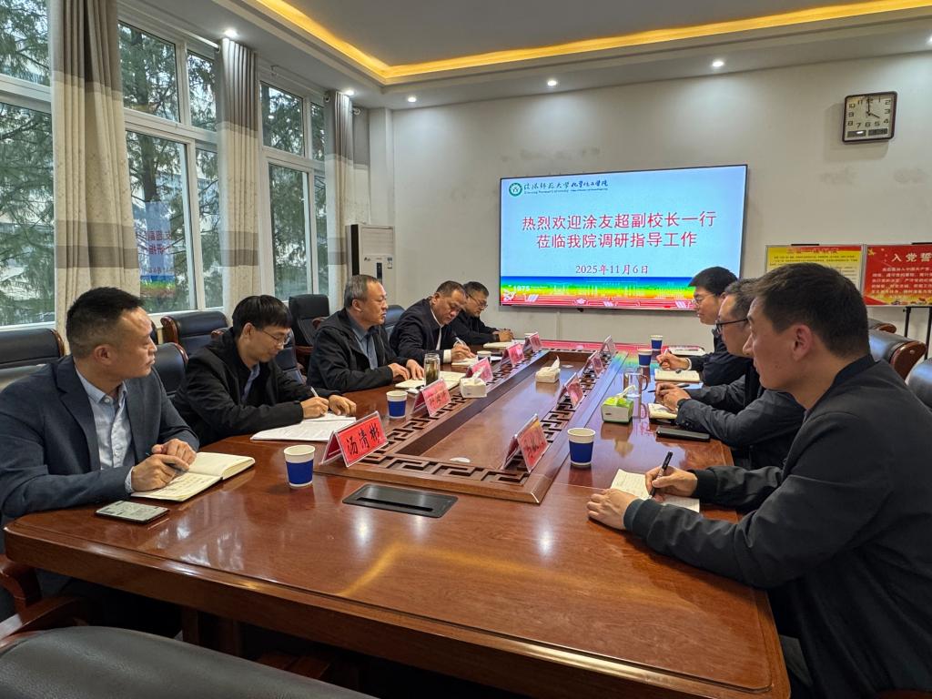 11月6日,副董事长涂友超带领科技处及学报编辑部相关负责人莅临太阳集团tyc151cc调研指导科研工作;公司党委书记吴志伟、经理曹俊涛、公司教师代表参加调研。