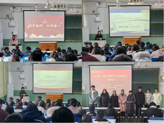 12月16日,太阳集团tyc151cc和建筑与土木工程公司协办的2025年“身边的榜样·奖学金标兵”宣讲会在教二T5成功举行。此次邀请了数学与统计公司魏一、物理电子工程公司王恒、地理科学公司闫佳惠三位奖学金标兵为公司同学进行事迹宣讲。