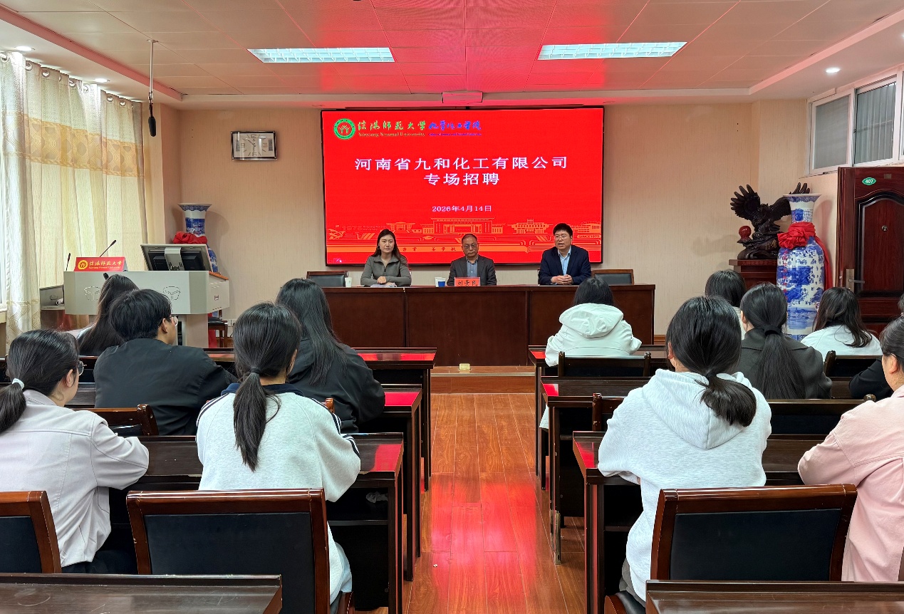 为精准搭建毕业生与优质企业双向对接平台,4月14日,河南省九和化工有限公司在化学楼407会议室举办专场招聘会。公司总经理刘景民受邀到场开展专题宣讲,活动由公司党委书记吴志伟主持,公司相关专业部分毕业生参加。