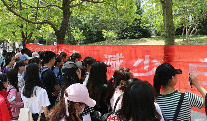 随后,吴志伟和李中杰在写着“自觉抵制外卖,减少白色污染”的横幅上签名。接着,一批又一批的同学们也陆续在横幅上签上了自己的名字。约半个小时后,活动圆满结束。