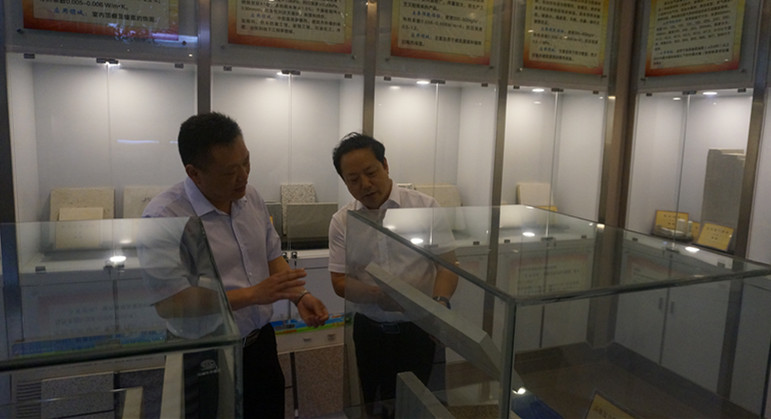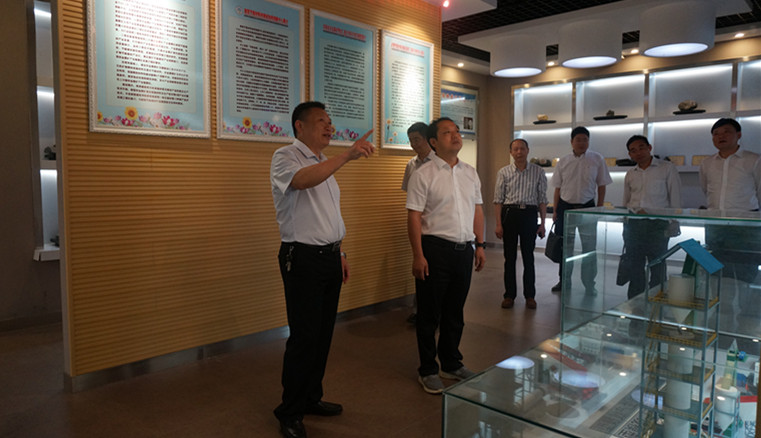 周光明在化院领导班子的陪同下参观了信阳市非金属矿物展馆,井强山为专家详细介绍了公司产学研一体化教学成果。随后专家一行走进各个实验室,考察了实验室设备、使用及对员工的开放情况,对公司硬件设施、平台建设给予了积极评价,并且提出改进意见。