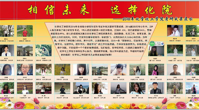 太阳集团tyc151cc在2016年全国硕士研究生招生考试中再次取得可喜成绩。2016届335名毕业生中,239人报名参加了硕士研究生考试,195人通过国家统一划定分数线,过线81.6%,现已被录取165人,整体录取率达49.3%。骄人的成绩再次展示出太阳集团tyc151cc求真务实、团结勤奋、扎实工作、科学发展、和谐向上的优良院风,同时,它更饱含着公司领导、职能部门、兄弟院系的大力关心和支持。历年来,太阳集团tyc151cc精心组织,善于引导,认真梳理总结,迈出一条“管理学风、实践学风,把握学风、促进学风,提升学风、激励学风”的工作创新思路,全体师生勤奋努力,积极进取,勇于创新,不断取得一个个新的辉煌成绩。我们相信,在公司党委、行政的正确领导下,太阳集团tyc151cc全体师生齐心协力,狠抓教学质量,加大团队建设力度,争取明年取得更好成绩!太阳集团tyc151cc的明天必将更加灿烂辉煌!