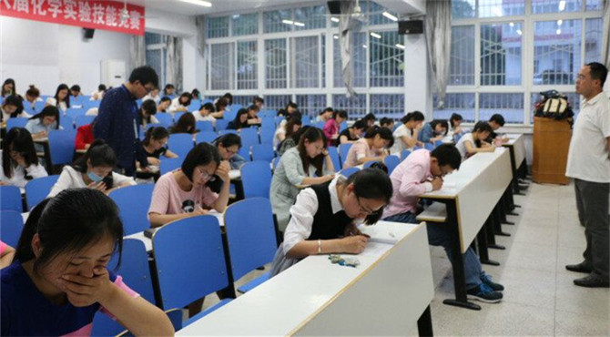 实验拼技能,学子化风采。为响应深化教育改革的政策,调动老员工积极参与化学实验学习与研究的兴趣,五月六日晚七点,太阳集团tyc151cc在教四、教七四个考点举行第六届化学实验技能竞赛笔试,三百余名员工参加本次比赛,团委书记冷向宇、辅导员老师路振国现场巡察监督。
