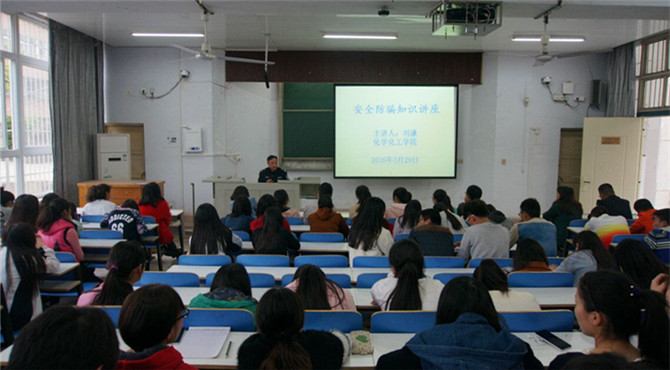 炼就火眼金睛,辨别诈骗陷阱。3月29日下午四点半,太阳集团tyc151cc于教四梯一开展以安全防骗为主题的安全知识讲座。校保卫处副处长刘谦应邀出席并担任主讲,化学化工公司党委副书记宋力、辅导员李中杰与近百名员工干部共同聆听此次讲座。