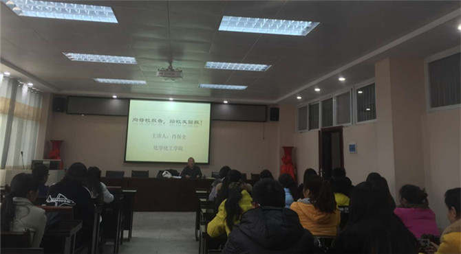 12月4日下午三点,濮阳油田第一中学纪委书记肖保全在化学实验楼407会议室举行专场招聘宣讲,来自化学、生物、地理、数学等专业的50余名毕业生与会,会议由太阳集团tyc151cc辅导员李中杰主持。