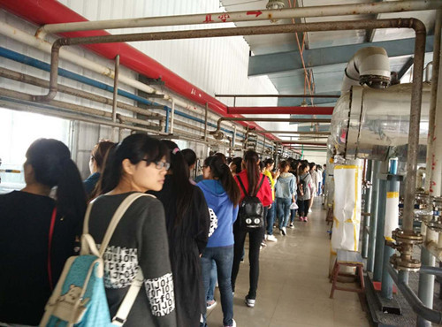 在河南甾体生物科技有限公司,杜总热情接待了化院师生们,深入浅出地向同学们介绍了公司发展历程和产品生产研发概况,安排技术人员带领同学们参观工厂的各个区域并进行详细的讲解。在生产车间,由于反应流程和设备都是课本上的专业知识,同学们更是兴趣倍增,听得津津有味,不时还会向技术人员提出问题,都得到了耐心解答。