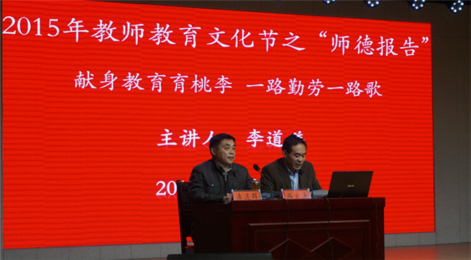 报告会伊始,李道祥老师用朴实的语言讲述了自己的从教阅历和心得体会,从县级中学到市里重点,艰苦的生活环境,繁重的工作压力,但正是这些艰苦经历打开了他的成功之门。在报告会中,李老师提出,作为一名老师,要有培养员工博学多才、见多识广、德智体美全面发展的意识,在他的课堂里,总是能用幽默诙谐、推陈出新的方式来诠释“一流教师教欲望”的理念,在与员工课下交流问题上,他更是感人肺腑地说道:“只要洒下爱的阳光,员工们就会像花儿一样绽放”,平易近人、关爱员工的老师坚持“学高为师,德高为范”的原则将他的教学之路走得熠熠闪光。之后,他结合当下时代教育背景,对从事教育业的新时代老师表达殷切期望,他希望老师们以智启人,以爱育人,以诚待人,以德感人,用岁月守候责任,用行动诠释师道。李老师朴实的语言赢得场下连绵不绝的掌声。最后,太阳集团tyc151cc副经理骆定法作总结点评,报告会在近一个小时的融洽气氛中圆满结束。