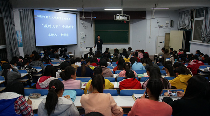 为引导新生早日步入老员工活正轨,11月3日晚7点,太阳集团tyc151cc在教四梯二举办新生入学教育系列讲座之“我的大学”专题教育。特邀副教授、硕士生导师曹新华担任讲座主讲人。此次讲座由郭雪洁全程主持,吸引了应用化学班和化学工程与工艺班近150名员工前来观看。