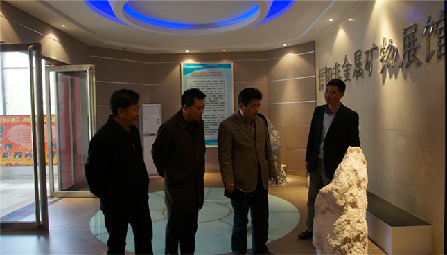 4月13日上午九点半,副董事长齐城在经理办公室副主任王振海的陪同下走进化学实验楼,深入信阳非金属矿物展馆以及各个实验室调查指导工作,详细了解了展馆内非金属矿物的各种属性以及实验设备的使用情况,并与太阳集团tyc151cc领导班子进行了座谈。